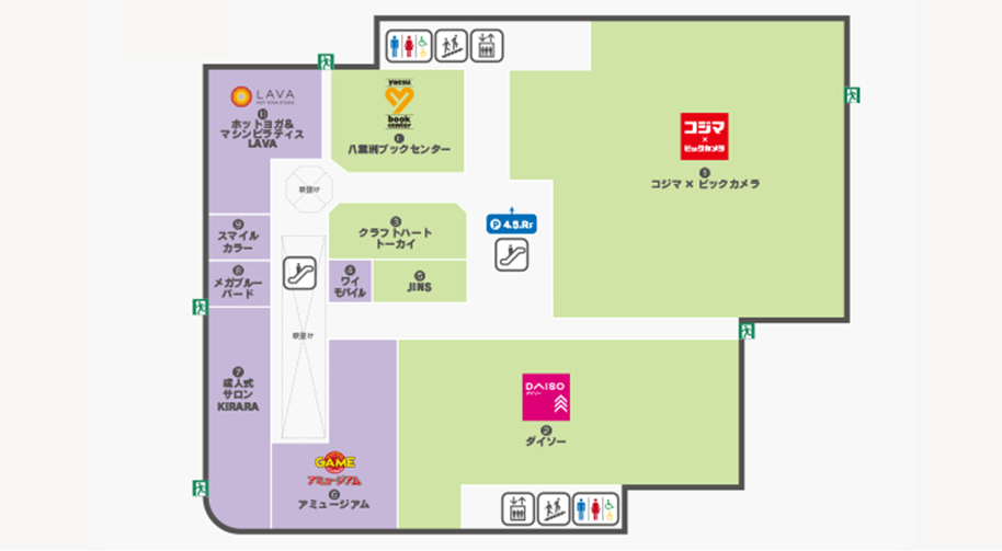 ➡駐車場からエスカレーターで降りてすぐのダイソーのとなりに展開されていて